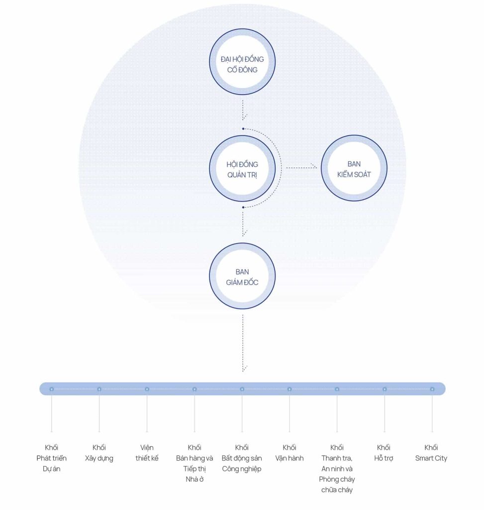 Minh bạch và hiệu quả là những mục tiêu quan trọng hàng đầu mà mô hình quản trị doanh nghiệp của Vinhomes hướng tới. Hội đồng Quản trị Vinhomes ý thức sâu sắc rằng chỉ có xây dựng và vận hành được hệ thống quản trị doanh nghiệp đảm bảo các tiêu chí đó mới mang lại cho cổ đông của Vinhomes những giá trị và sự phát triển bền vững. Là một đơn vị thành viên quan trọng của Tập đoàn Vingroup, Vinhomes được kế thừa các giá trị cốt lõi và nguyên tắc quản trị doanh nghiệp của công ty mẹ. Vinhomes được tổ chức theo cấu trúc phù hợp với các thông lệ quốc tế tốt nhất. Trong đó, vai trò sở hữu, quản trị và điều hành được tách bạch. Các hoạt động của Công ty được tổ chức theo các khối chức năng, phụ trách các lĩnh vực trong chuỗi giá trị.
